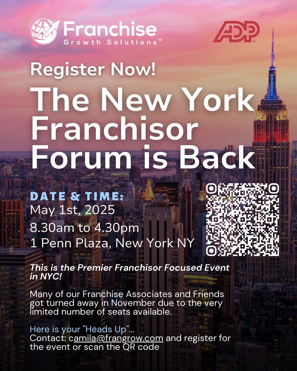 Gary Occhiogrosso, Founder of Franchise Growth Solutions, and the creator of the event said, “This is our second event, and we’re incredibly grateful to ADP for their continued support in making it happen. The New York Franchisor Forum is focused on delivering high-impact content tailored specifically for emerging franchisors and entrepreneurs considering franchising their business. Our lineup of speakers features seasoned franchise executives who have successfully scaled brands into the hundreds of units, these are the pros who’ve walked the walk. This is not your typical franchise conference. The Forum is a classroom-style, education-driven experience, designed to equip entrepreneurs with the real-world knowledge and strategies they need to become successful franchisors.”